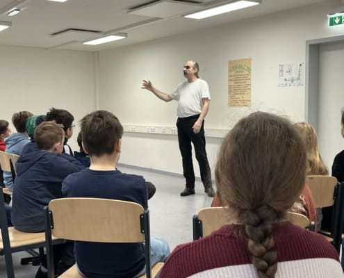 Am 17.12. erhielten die ersten und zweiten Klassen Besuch von einem professionellen Geschichtenerzähler. Die ersten Klassen bekamen Mittwintergeschichten zu hören, die zweiten Klassen beschäftigten sich mit Sagen. Die spannenden Erzählungen stießen auf großes Interesse, kommt es doch nicht so oft vor, einem echten Geschichtenerzähler zu lauschen.