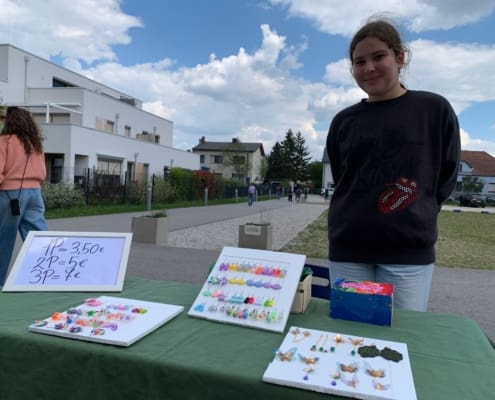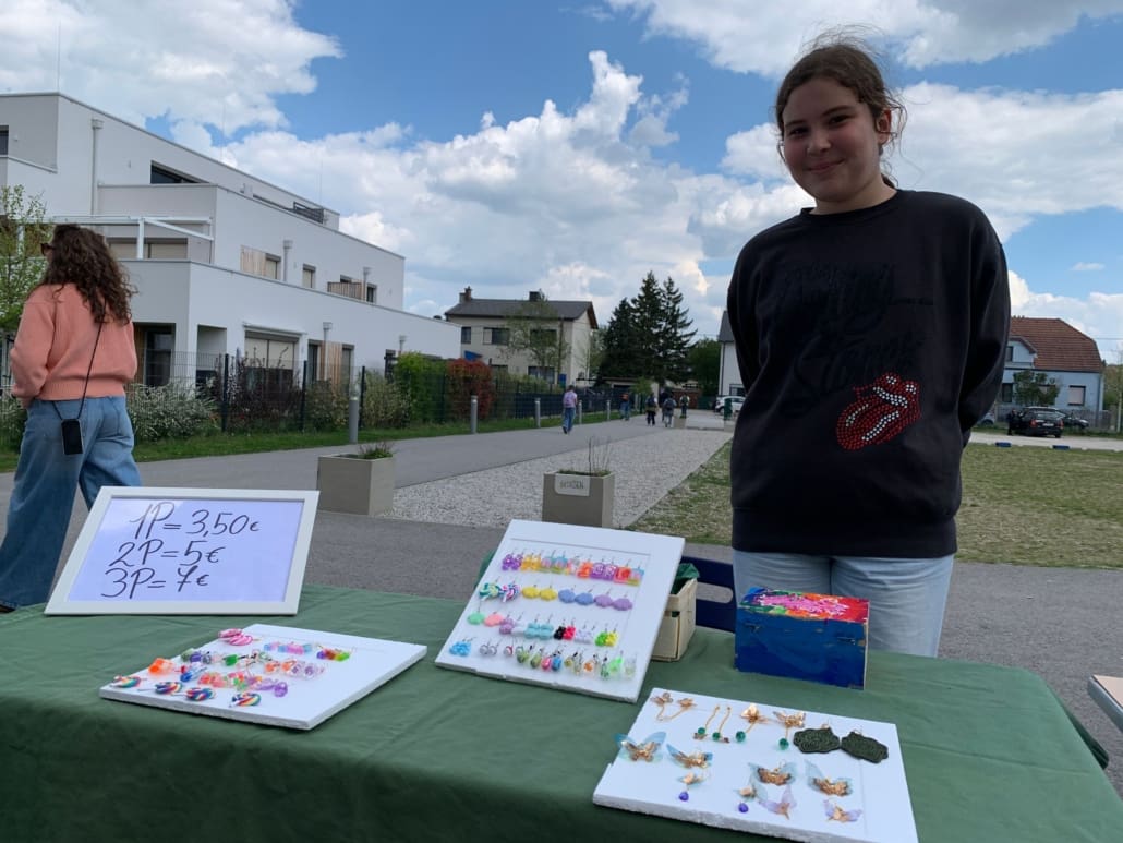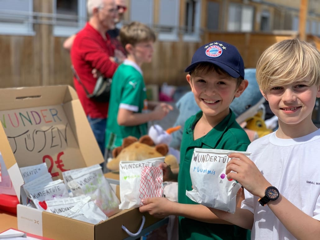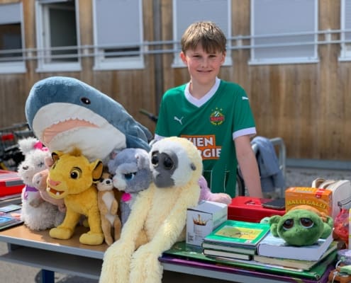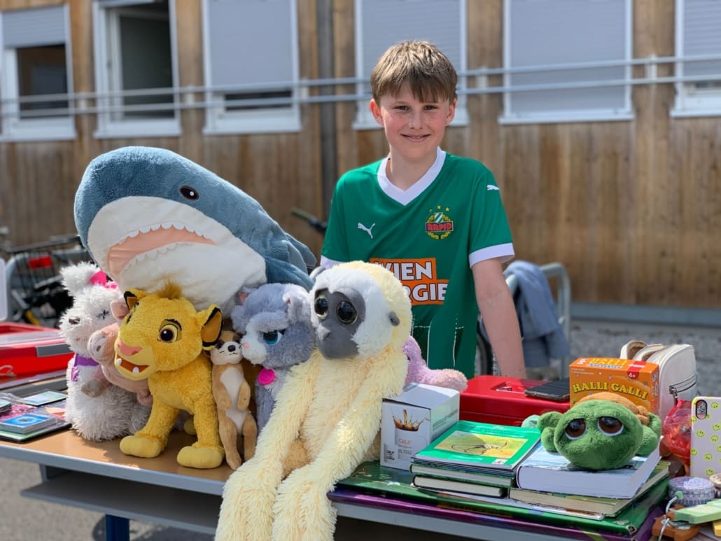 Bei schönstem Wetter fand Mitte April der 1. Schulflohmarkt statt. Die SchülerInnen haben sich eifrig beteiligt: Limonade wurde gemischt, Wundertüten geschnürt, Schmuck hergestellt und natürlich persönliche Schätze angeboten.